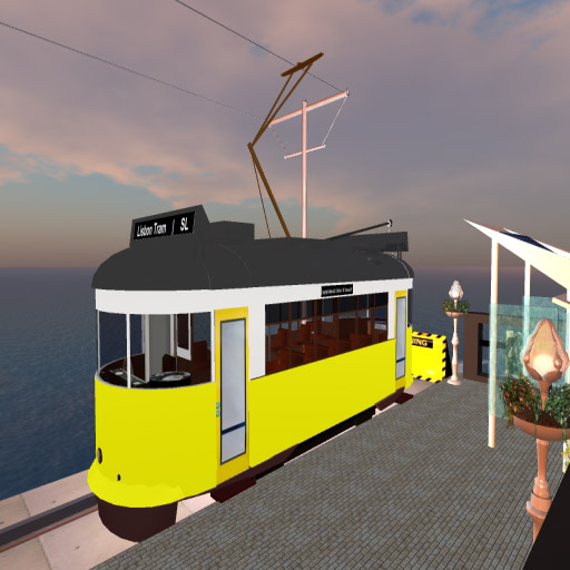 Off to a productive start in Kitely! A new friend gave me a replica of a Lisbon Tram car. I decided to put in the finishing details. Because it is in its final stage- a whole 210 prims, there is a question if I can get it to actually move. After I finished the fine details, I realized that the thing needed rails, a station, and electric cables – so another 4 days of work was needed. Another friend gave me a really cool gadget that allows visitors to change the region environment settings! I placed it on the Welcome Bridge. Finally, I worked on the problem the whole year…,I was able to figure out how to set up the TVs in every resort room! There is now a schedule of movies and music videos for every week this summer. For the last two weeks in June – to celebrate Juneteenth – 12 Years A Slave was showing, followed by a weekend of Journey music videos. Beginning July 1st – classic movies are the genre with a showing of Our Town followed by a weekend of The Beatles.